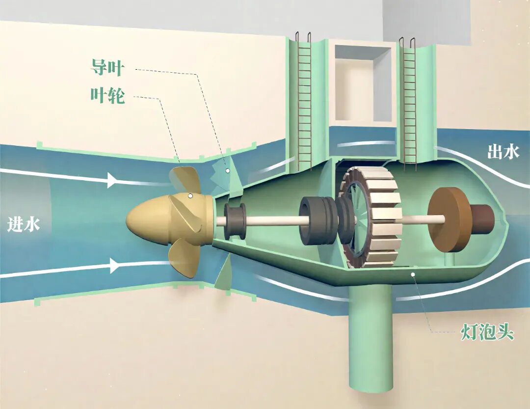 傳統軸流泵低揚程大流量復雜工況下泵站效率低下、結構單一的問題,是工程設計階段的主要技術瓶頸。項目負責人沈繼華帶領設計團隊通過對水泵機組的技術研究,突破傳統軸流泵低效桎梏,首次在國內引入大型行星齒聯燈泡貫流泵技術,成功突破了國內(特)低揚程、大流量泵站水泵機組選型的難題。該技術可將水泵與電動機采用行星齒輪箱連接減速傳動,并布置在貫流泵燈泡體內,形成平直流道,使水流無需轉向即可高效通過,能量轉換效率達81%,遠超傳統機組的65%~70%。為驗證這一技術的可行性,中水淮河公司積極與高校開展聯合研究,采用先進技術、三維建模與計算流體動力學(CFD)數值模擬技術,對泵體結構、葉片角度及流道形態進行多輪優化。通過模擬分析,設計團隊精準預測了水流擾動與壓力分布,最終確定葉輪直徑2.85米、機組正交布置的最優方案,既保障了運行穩定性,又顯著降低了水力損失。