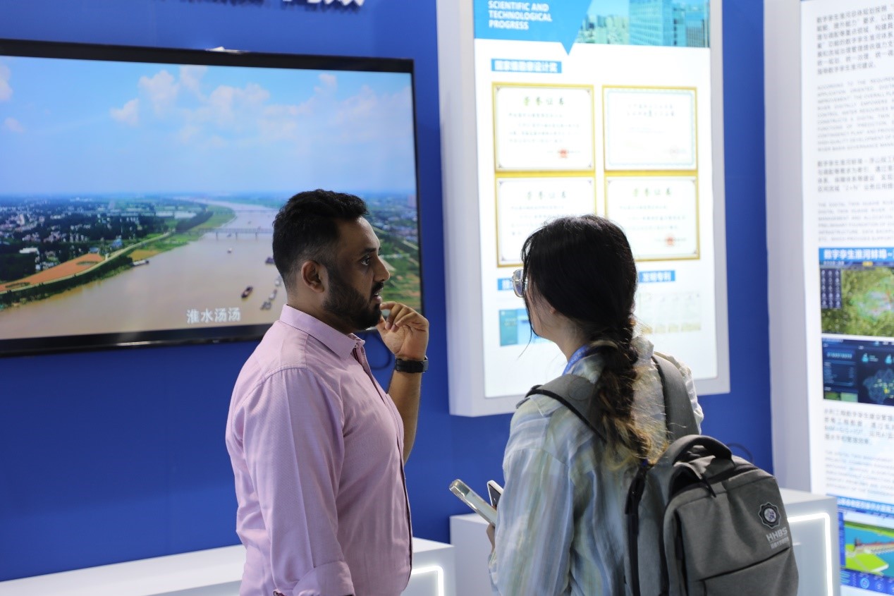 公司經(jīng)典水利工程項(xiàng)目和數(shù)字孿生淮河更是吸引了荷蘭公共水管總司、贊比亞代表團(tuán)等多家海外觀展團(tuán)隊(duì)的關(guān)注,詳細(xì)詢問了工程建設(shè)的具體信息,為公司開展跨國合作打下良好基礎(chǔ)。武漢大學(xué)、河海大學(xué)、天津大學(xué)、澳門科技大學(xué)等多家高校也前來展區(qū)交流學(xué)習(xí)。